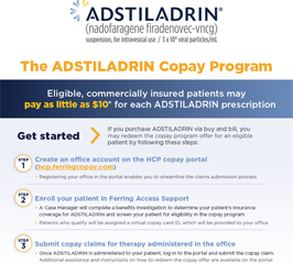 Qualified uninsured/underinsured patients enrolled in the Ferring Access Support Program may receive ADSTILADRIN at no cost.